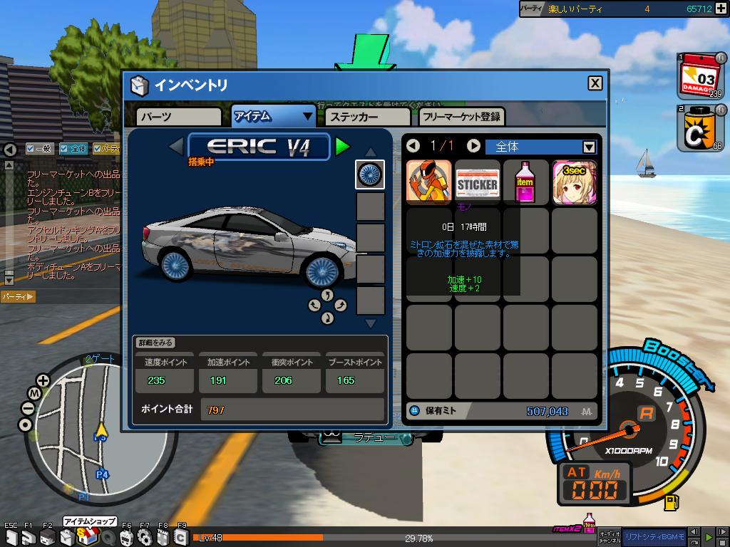 タイヤとかアイテムドリンクとかはくじを買ってそれで当たりました♪w